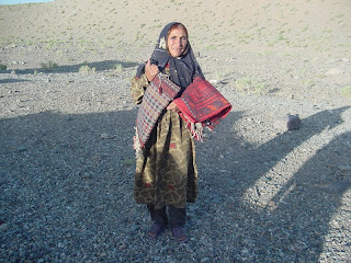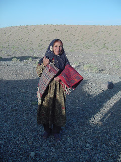 Here, I am posting pictures of an Afshar black tent I took in a trip to Sirdjan, a town 110 miles south of Kerman in and around which many Afshars live. I am also posting pictures of an Afshar lady from whom we bought a couple of sumac bags in the same trip.
