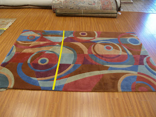 A law office contacted us recently with a custom job request. They had a rug they wanted to use in their lobby/welcoming area but it was too large! It was a 5 x 8 rug but the largest the room could fit was a 5 x 5. Well, they brought the rug to right place because we here at Rug Ideas have done downsizing countless times before. We discussed where to do the cut during our initial conversation to make sure the rug would look great. Take a look at the before pics below: