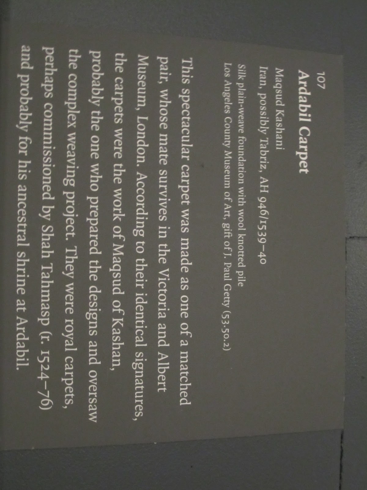 When is the next time LACMA will put this beauty on display? Who knows. I am sure even the curators do not know that. I am extremely happy that this time, I visited this beautiful and amazing carpet for five times. What a joy!