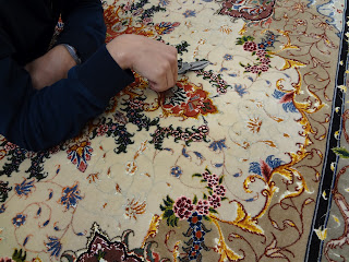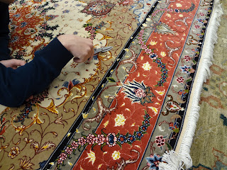 Taking after cleaning pictures from a Kerman rug before its delivery