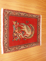 In our latest rug shipment from Tehran, we received a unique small Bijar rug with a very unusual design. The size is 25 by 32 inches and the design is dragon and phoenix.