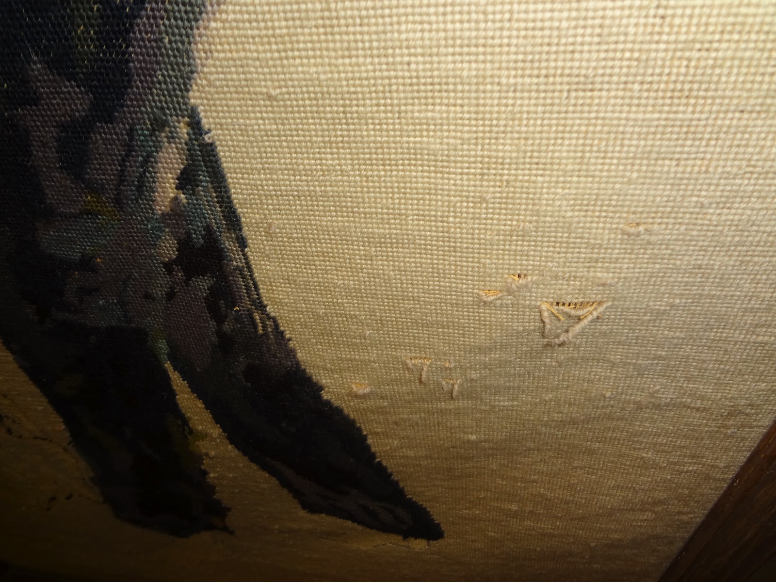 Yesterday was Saturday and we were at work from 11:00 am to 5:00 pm. Before and after work, we had appointments with two different customers to pick their rugs up, both in Beverly Hills which is 2 miles or 10 minutes drive from our rug gallery. One pick up was a 9′ x 12′ rug with pink nail polish on it. We have to do stain removal for this carpet. The other pick up was three needlepoint pieces which need cleaning and repair. They are damaged by the cats who jumped up and down and scratched these needlepoints.