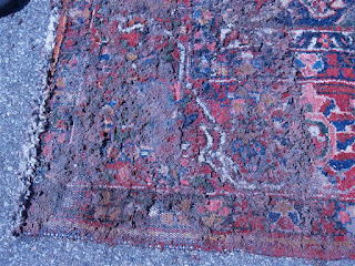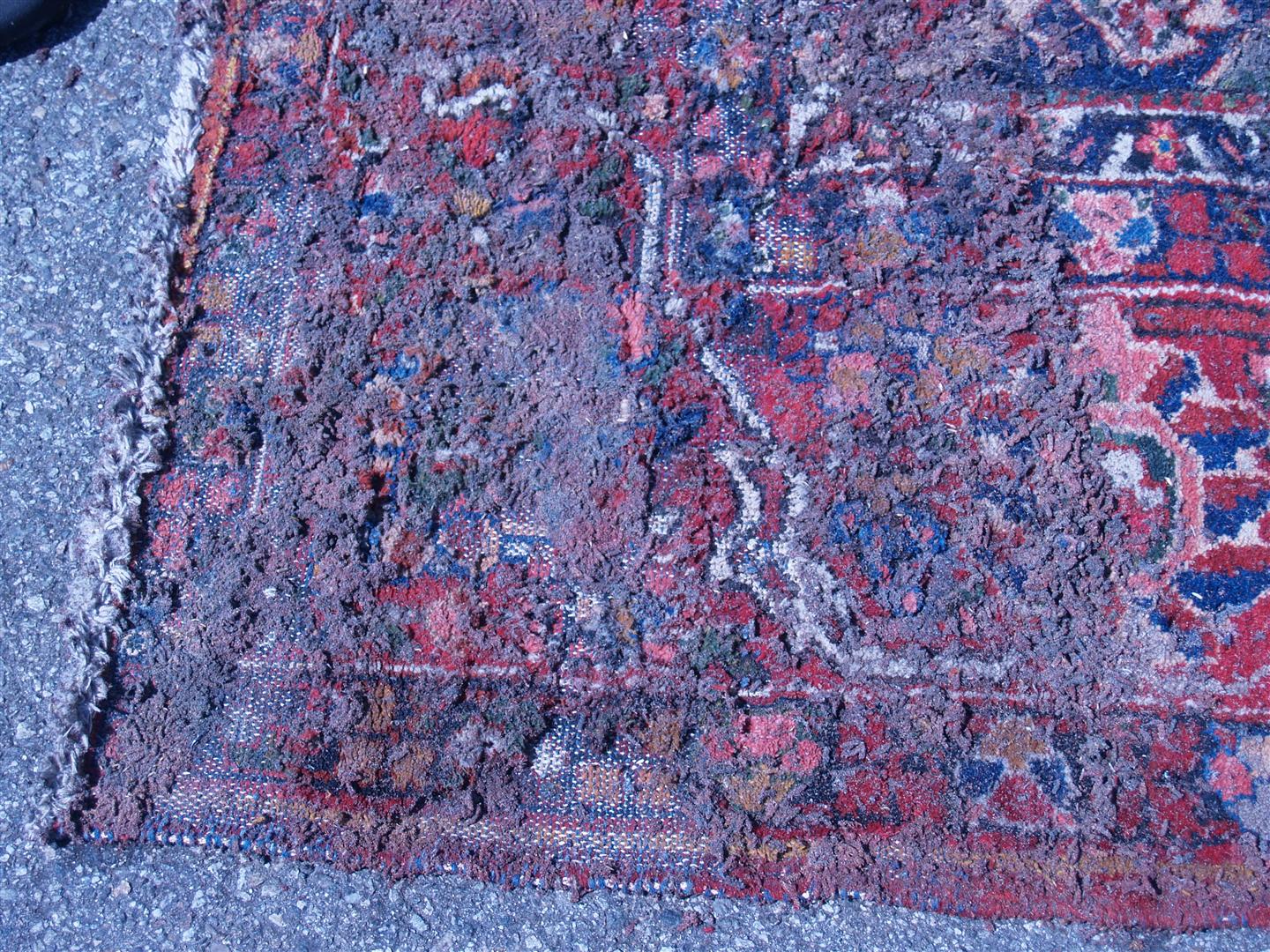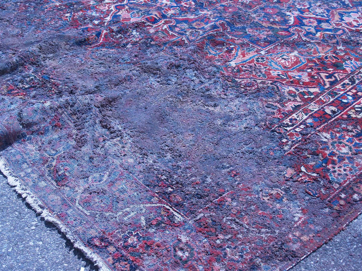 This once valuable rug is now worth nothing and the owner asked us to throw it away for her. We were sad to do so but there was no saving this rug. Luckily she only had this one in her storage and the rest at her home. But beware, this could happen to your rug in storage if it is not cleaned and packed correctly.