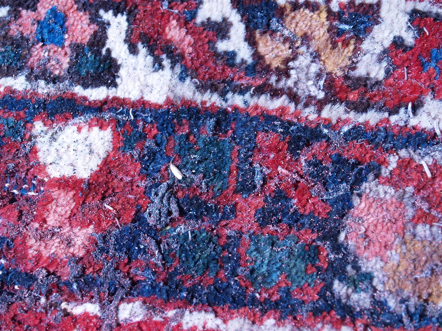 We have a sad story for today’s post. We received a call from a customer that has cleaned many of her rugs with us; she wanted us to pick up a Persian rug she had in storage so that we could deep clean it. It had been sitting in storage for 5 years and was cleaned and was not packed with acid free paper, nor did it have any moth balls placed in it. When we got to her storage unit we proceeded to open the rug to find one of the worst moth infestations we had ever seen. Take a look at the pics below: