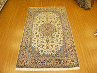 We received an Isfahan rug with silk foundation almost without fringes. We did a cosmetic fringe implant (!) and our customer was surprised to see her rug restored in beautiful condition.