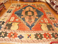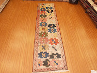 In an earlier post, I mentioned that a customer had a big hand knotted Turkish rug. It was too big for her office, so she wanted us to make the rug smaller. She also wanted us to make a runner by attaching the two border. Here, you can see the rug before and after the cosmetic surgery!!