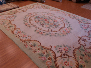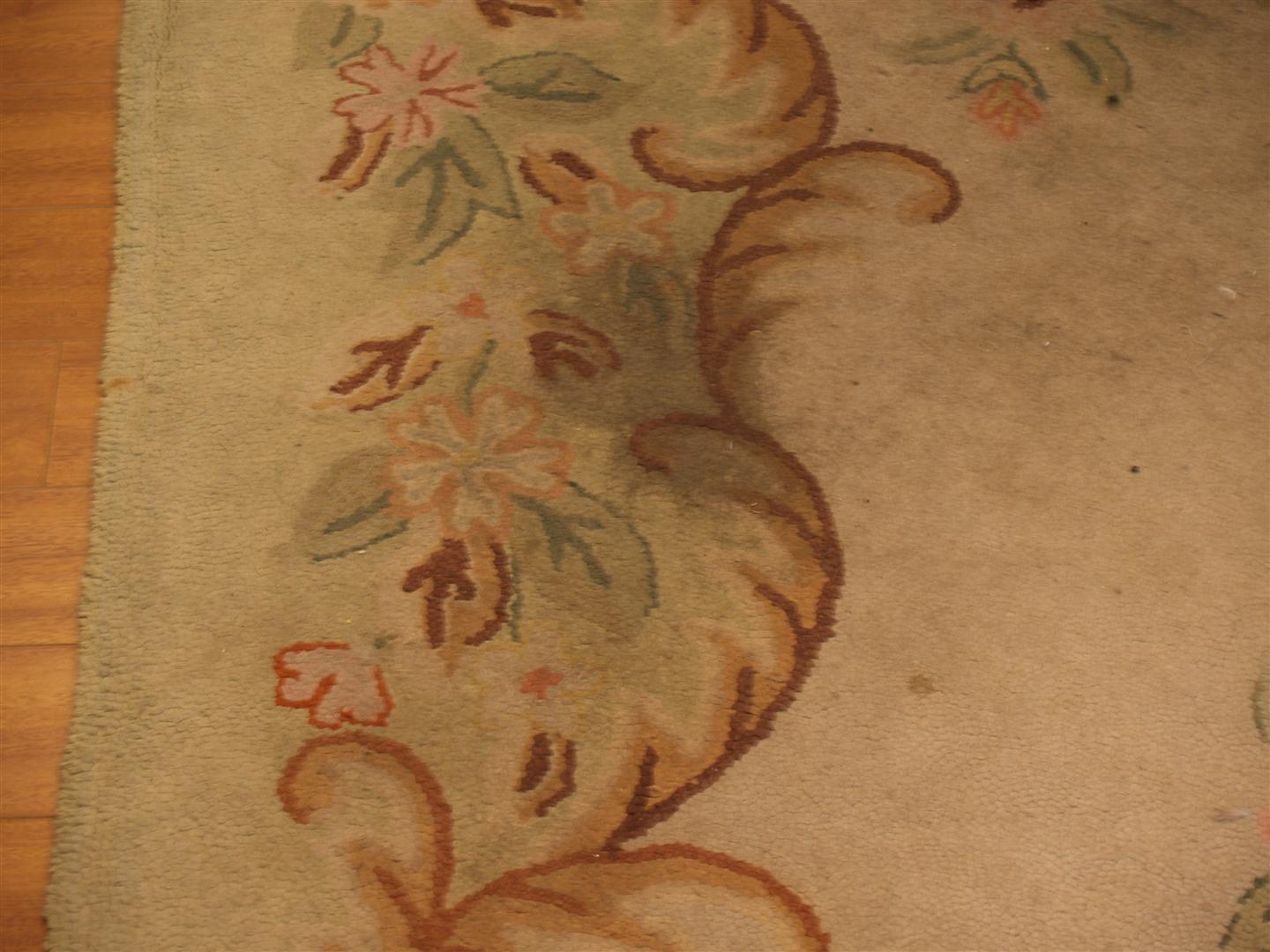 A repeat customer of ours brought in her beautiful 9 x 12 Needlepoint Rug for it’s scheduled yearly cleaning and boy did it need a good cleaning this year. She lives on the beach so sand is constantly tracked into her house and onto this rug. Take a look at the past year’s worth of foot tracking on the rug: