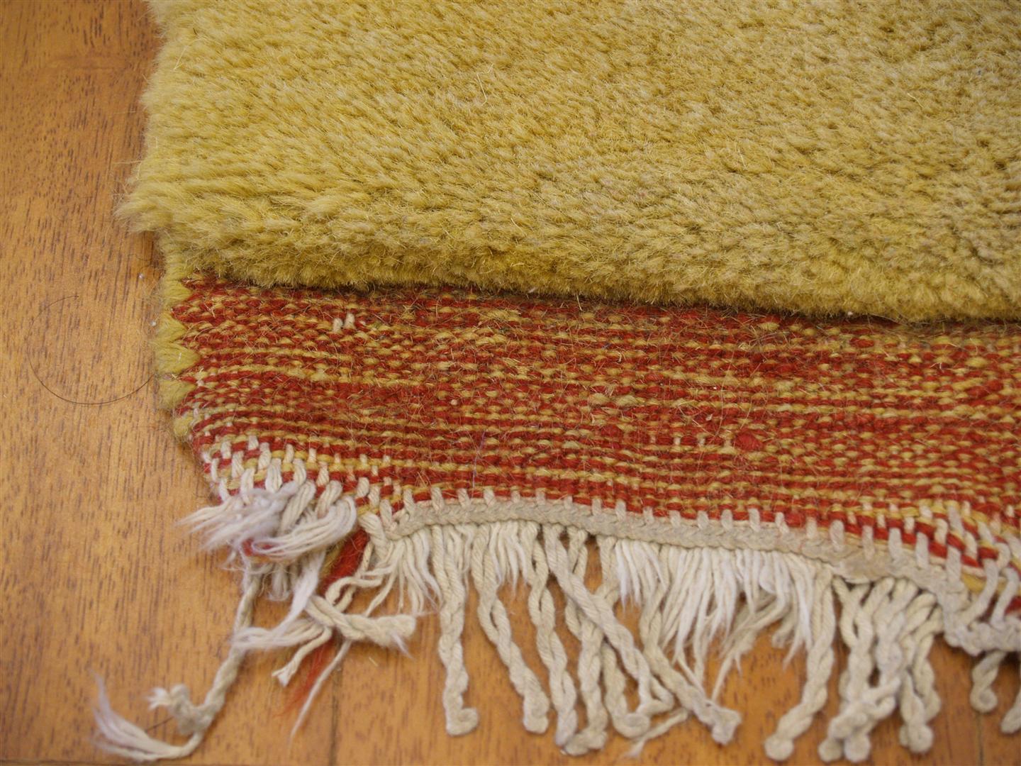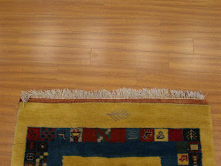 A customer that had been referred to us by his friend came in recently with a nice Gabbeh rug that had been in his collection for 20 years. He wanted our deep cleaning treatment on his rug as it had not been cleaned in about 5 years. We did an inspection of the rug and pointed out that the ends had some damaged that should be repaired to prevent further unraveling of the rug. Check out the pics below: