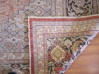 We had a very busy and hectic day today. We started at 8:30 am by going to a clients home in Beverly Hills. He had few rugs for cleaning. Three of his six rugs were Hadji Jalili Tabriz carpets. They needed some repair and securing the ends. Two of these were 4′ x 6′ and one carpet was a big 9′ x 13′ Haji Jalili. This client had a very good taste and had a couple of other beautiful Kerman Ravar rug and a Malayer Kurdish runner. They all needed cleaning and repair. We picked them all up.