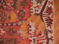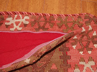 A customer called me two weeks ago and had two old Turkish kilims. One of them was damaged and could be repaired. The other piece was badly damaged and was torn apart and not repairable. We agreed on making few cushions out of this damaged old kilim which belonged to this customer’s father and had sentimental value for her.