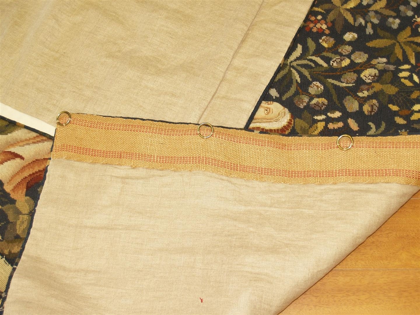 Sometimes tapestries do not come with what’s needed to hang them and that’s where we can help. In the picture above we’ve sewn in a few inch canvas piece which lines the back top of the canvas from left to right. We’ve attached rings on this particular piece to hang from hooks that the owner has installed on their wall. We can also do a variation of this technique where we leave space in between top and bottom of the installed canvas where a rod can be installed that covers the width distance. If you are trying to hang your tapestry and are missing some key pieces come bring them to us and let us help you put up your piece or art for display!