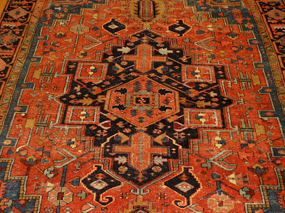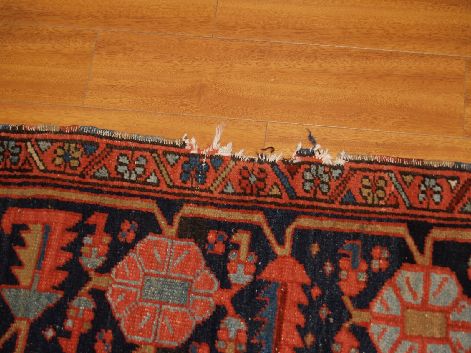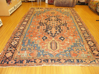 We received a severely damaged hand knotted Persian Heriz rug for cleaning and repair. Here I am posting some information in general on Heriz carpets with few pictures of this particular rug from before and after the cleaning and repair.