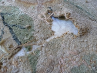 We picked up an old hook rug from one of our clients for cleaning and repair few weeks ago. One of our master weavers was assigned to work on the repair and restoration of this rug which had sentimental value to the owner. Our weaver did a great job and after we inspected the rug, we delivered to our clients house and placed it under her bed.