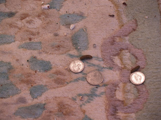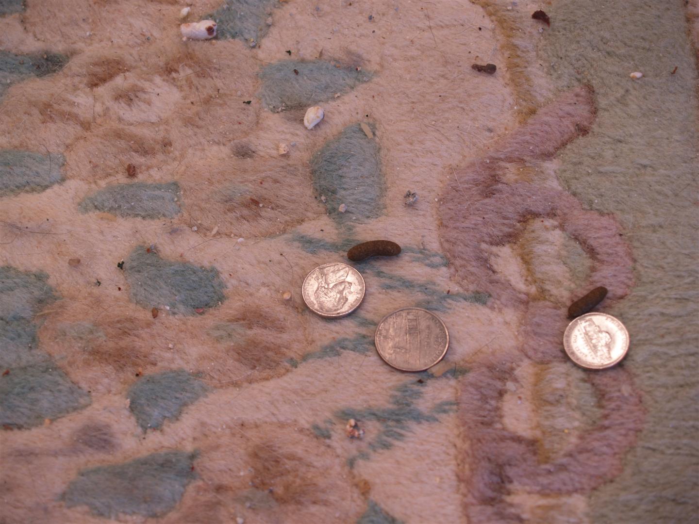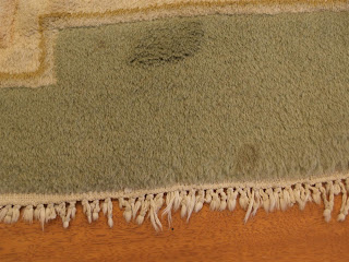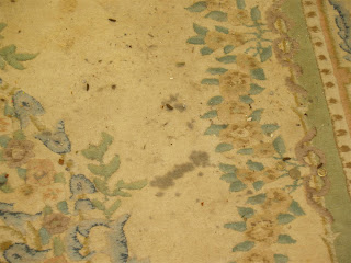 Stains, stains & stains… this is what a customer’s Indian rug has received over the past 2 years. From liquid spills to gerbil poop to foot traffic, the owner’s rug was a dirty sight. It also has a large tear in one corner that was done by the company who previously washed their rug. Take a look below: