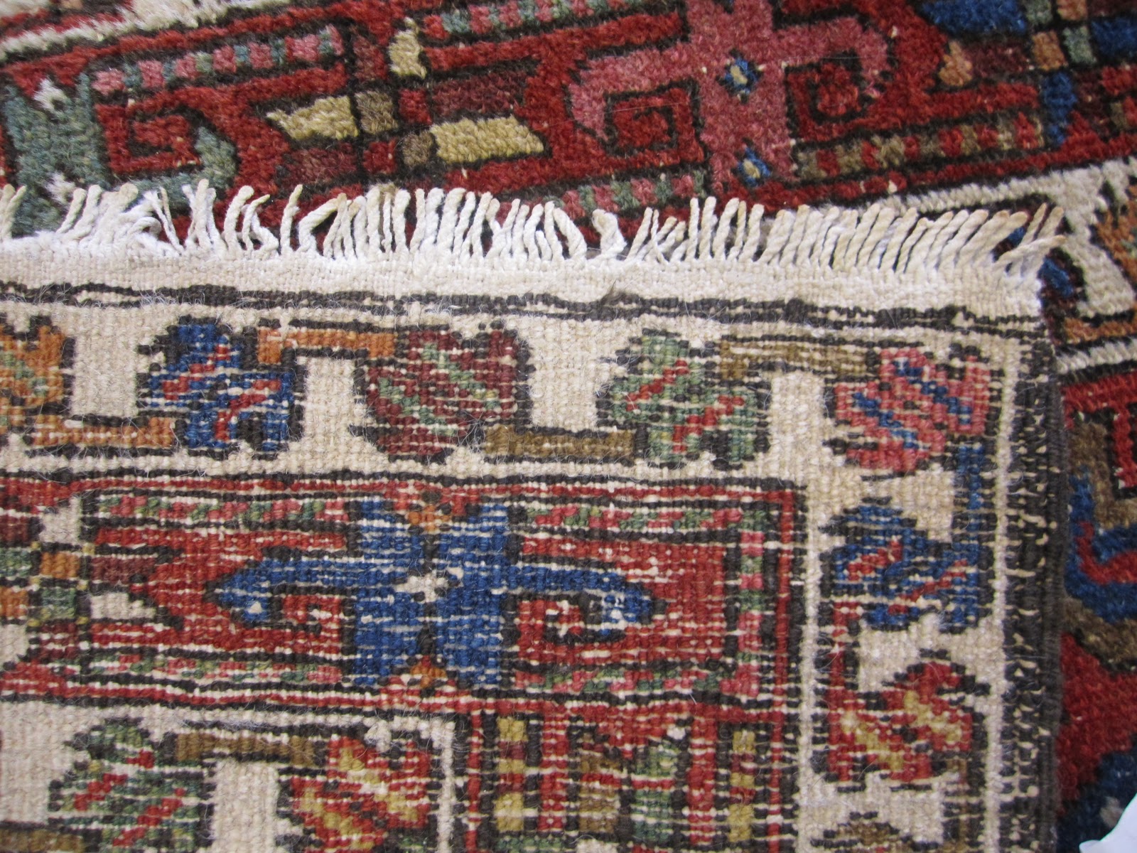 Karadjeh also spelled Karajeh, Qaradjeh, Gharadjeh, Gharajeh is a very small village north east of Tabriz in north west Iran very close to the border of the Republic of Azerbaijan and republic of Armenia. The weavers in this area produce beautiful hand knotted carpets mostly small sizes and runners. The design is geometrical multi-medallion in red. Occasionally we see dark blue and ivory backgrounds in Karadjeh rugs. The knots are symmetrical with flat double corded selvages on the sides. Using deep blue, sky blue and turquoise is also very common in the area. As you can see on the map, Karadjeh is to the north west of Heriz.