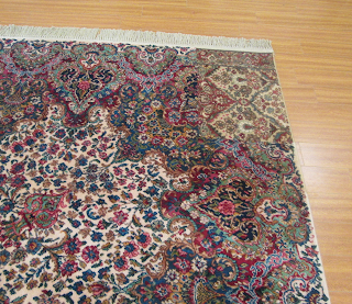 We picked up a big 10′ x 14′ Karastan rug for cleaning and repair from a client here in Los Angeles two weeks ago. Part of the top part of this rug was rotten and was severely damaged.We professionally wet washed it and gave it a full bath.