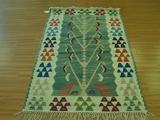 Most typical homes undergo two types of cleaning, the routine daily (or weekly) chore and the less frequent efforts sometimes referred to as Spring cleaning. Kilim rugs should also be cleaned routinely, along with the rest of the house, and be subjected to more thorough cleaning at longer intervals. In olden days rugs were hung across a wash-line and beaten on both sides to dislodge the dirt and grit, a method still highly regarded, and still practiced in many parts of the world, but mostly impractical under modern urban living conditions. Today, most routine cleaning is done by vacuuming, called ‘hoovering’ by the British. Three main points to note when vacuuming a kilim area rug are: don’t use high suction settings, vacuum on both sides, and don’t vacuum the fringe since with repeated applications some of the fringe may be torn off.