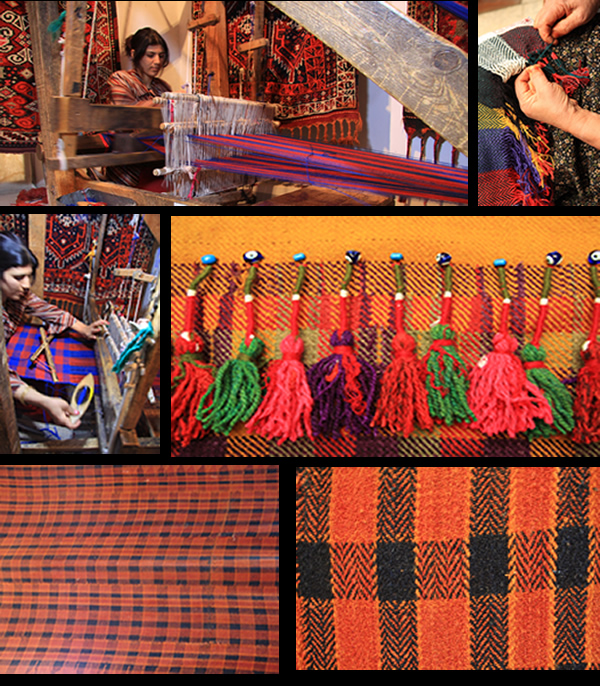 Usually Kurds of Khorassan weave two types of one-sided kilims on wool foundation and pile rugs of small sizes. Many of these rugs are woven around the city of Quchan on wool and in some cases on colored silk foundation. These colored silk foundations are also referred to as rainbow foundations. The kilims made by Kurds of Khorassan are coarse and in no way can compete with Senneh kilims of main Kurdistan.