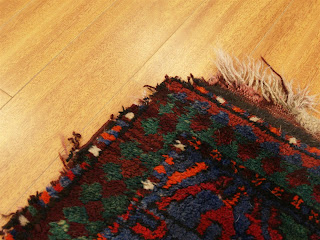 A wife came in a few weeks ago distraught because her new dog chewed on a very special rug of her husbands, leaving in tattered in many places. Take a look below: