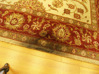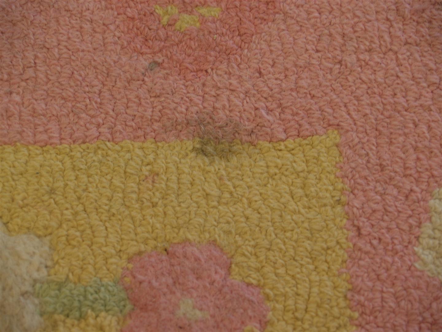 Last week a customer came in with 2 rugs that had been previously deep cleaned. It had been a year since that cleaning but seeing as how they had a toddler in the house, stains had accumulated and the rugs were in need of another good deep cleaning. See the dirty rug pics below: