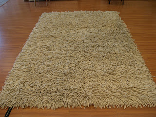 Shag rugs require extra attention as the pile is very high and thick. It must be thoroughly wet washed in order to get all the dirt that has accumulated out of the rug. We put the shag through our deep cleaning process and to our amazement the shag was actually once(and now again) a different color. Take a looked at the clean shag below: