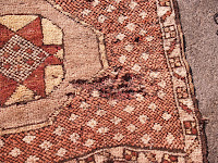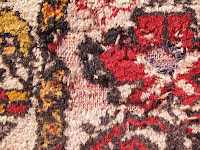 In this post, you may find several pictures of 77 moth damaged rugs a customer gave us for cleaning and repair last week. Some of these hand knotted rugs were totally destroyed so we consulted the customer and threw them in the trash can. They were not worth repairing!!
