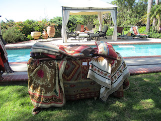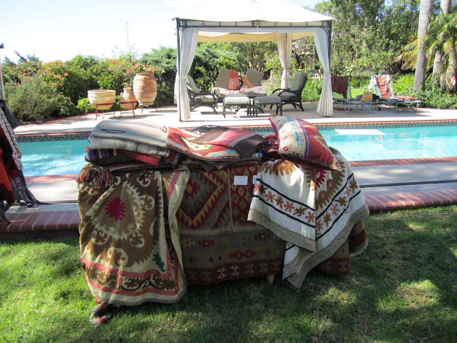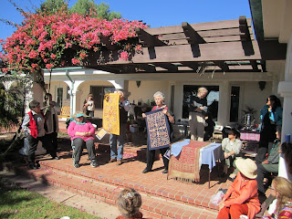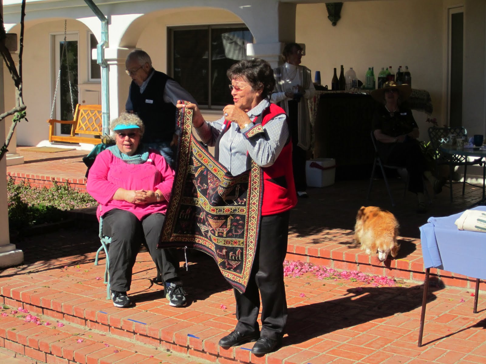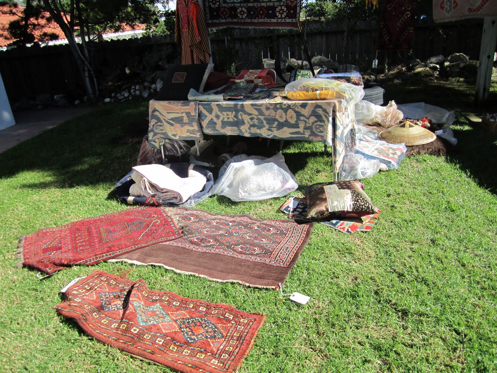 Textile Museum Associates of Southern California, TMASC had a gathering and Moth Market today in the garden of one of its members in Rancho Palos Verdes in south of Los Angeles. Around fifty members and guests participated in this one of a kind event. Some members had brought antique and unique items to sell and they did pretty well. The event started at 11:00 am and finished by 3:00 pm. The items on sale were textiles and antique tribal and village rugs.