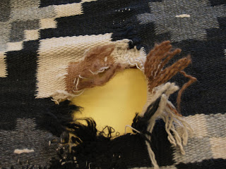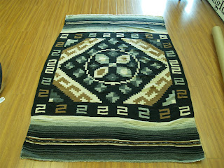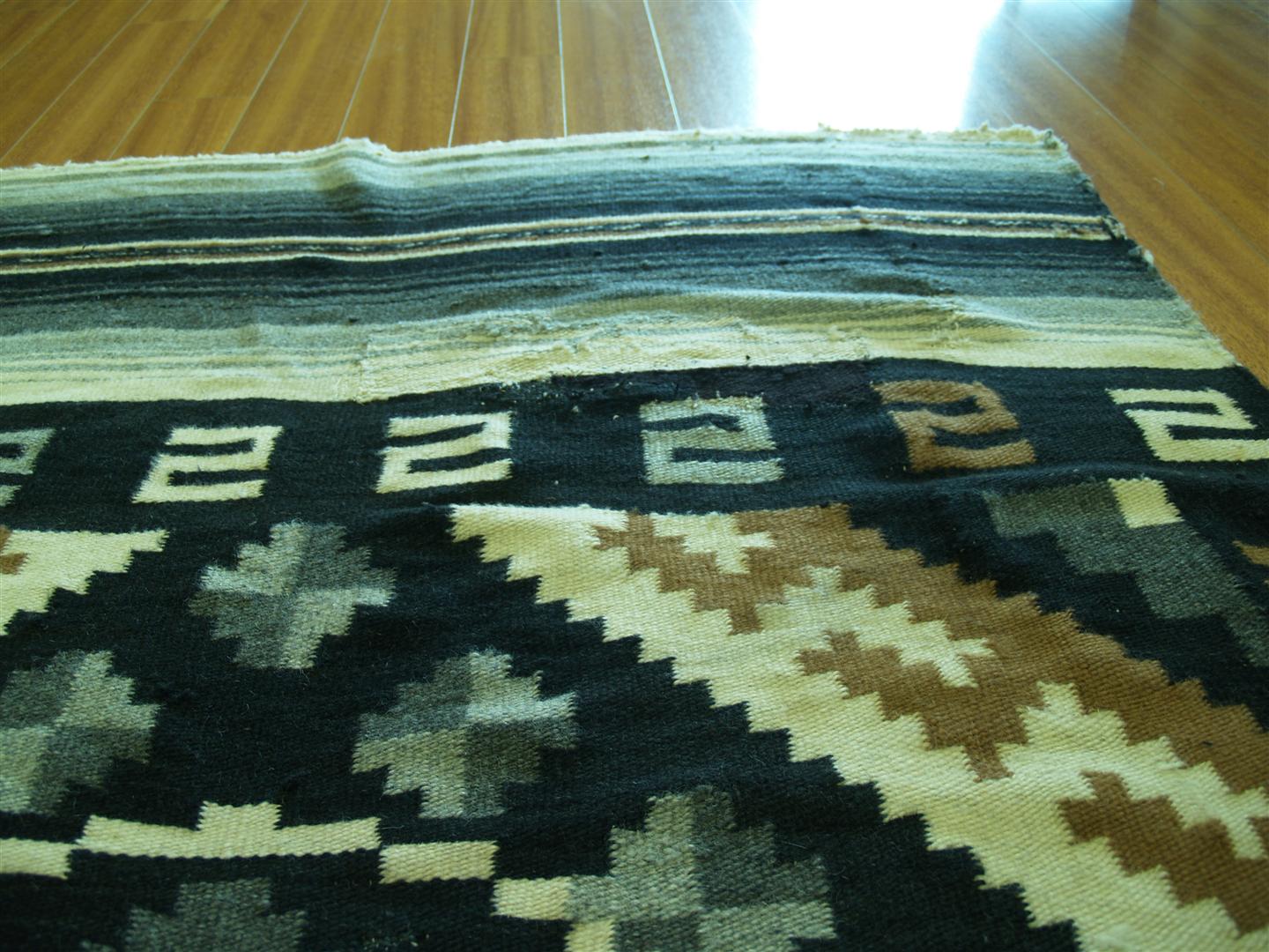 A good customer of ours recently brought in one of his Navajo Blankets, of which he has a great collection of. This one needed more than our deep cleaning, though. It had become torn and tattered from years of wear and tear(this blanket gets used very frequently). It held special meaning to the owner so they decided to have it cleaned and then restored. Take a look at some of the before pics: