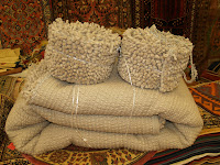 We sometimes receive new types of shag rugs with have thicker and longer piles than the previous generations of them. Here, I am posting a photo of such rug we received for repair. The rug was 8 x 10 and we cut it and made it 7 x 10. It was made in India.