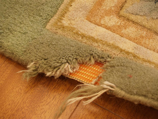 Today’s post follows up a previous post on the cleaning and reweaving of a large Indian Rug that we picked up from one of our customers. When we last left off the rug had been completely deep cleaned, sanitized and deodorized. With the rug in clean condition it was now time to take a look into the tear that had been caused by the previous company that attempted to clean it. Take a look at the damage below: