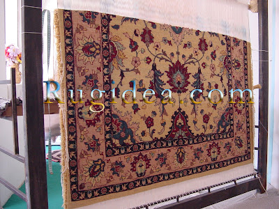 At the beginning, we used wool warps and foundations, but it seemed to be a bit difficult to manage this as the wool foundation was softer and more elastic. The rugs could not be as straight as we wanted. We changed the foundation to cotton and our problem was solved. All our looms were vertical and our weavers who were from all these four ethnicities of Turk, Lor, Kurd and Arab, used hooks to weave rugs and the knots were all symmetrical. The knot per square inch of these rug are approximately 160.