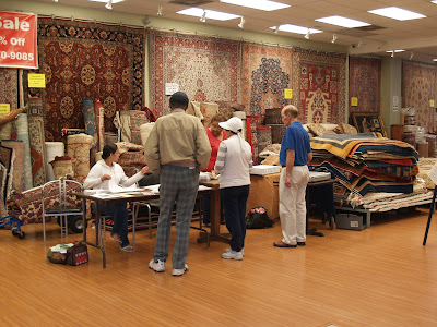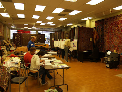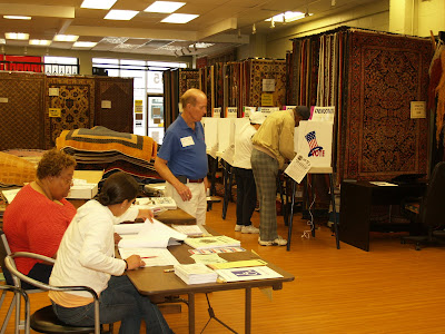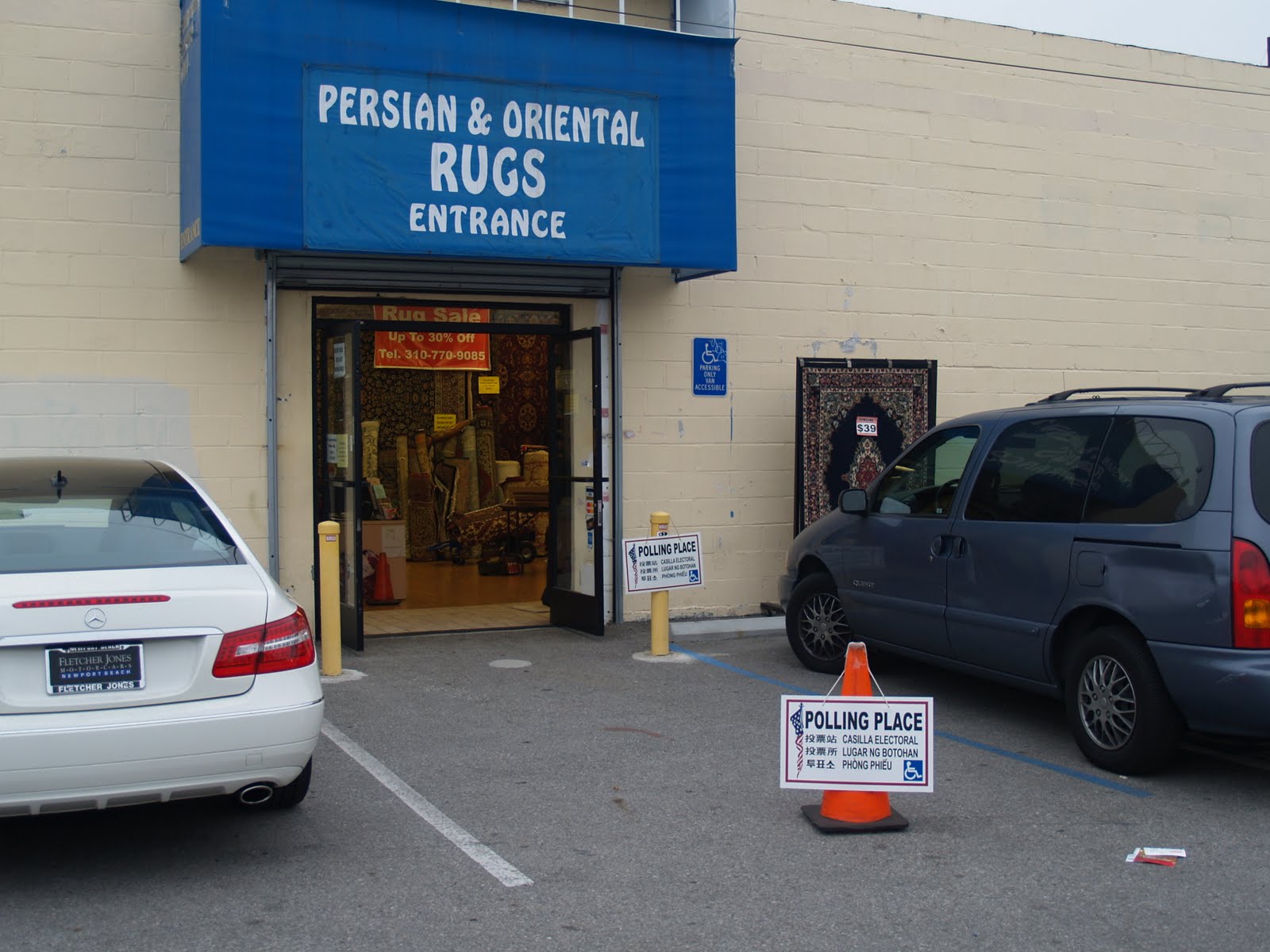 I came to work this morning at 6:00 am. Our rug gallery on 1655 South La Cienega Blvd. Los Angeles is a polling place. We have voting in California today. Four people are here from the Office of the Registrar, County of Los Angeles to do the set up and conduct the voting process. An inspector also stopped by to make sure everything is going smoothly. Those who have registered are coming in to cast their ballots.