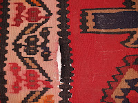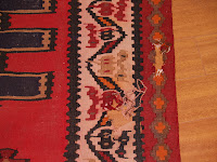 We just finished repairing a damaged Turkish kilim. The foundation of this kilim was cotton. The photos show how nice it came out after the repair.