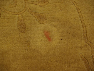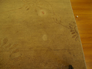 Today’s post involves a rug that had come in for a Rug Ideas deep cleaning. The rug in question was in the owner’s living room and had acquired quite a few stains over the last 2 years. From liquid spills to nail polish this rug was definitely in need of a good wet washing. Take a look below: