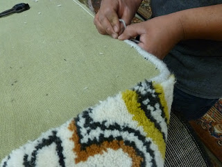 Then we secure the edges by hand to make sure that the knots do not come off. The last step is to install a canvas backing on the edges.