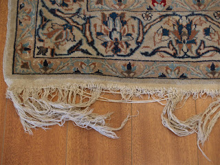Most rugs have white cotton fringe tassels, and others have wool or silk tassels (depending on where and when they were woven). Some rug owners like the look of the fringe on their rugs, to others it drives them nuts to always be straightening them, or keeping them from getting caught in the vacuum cleaner (that’s why you vacuum from side to side instead of from end to end).