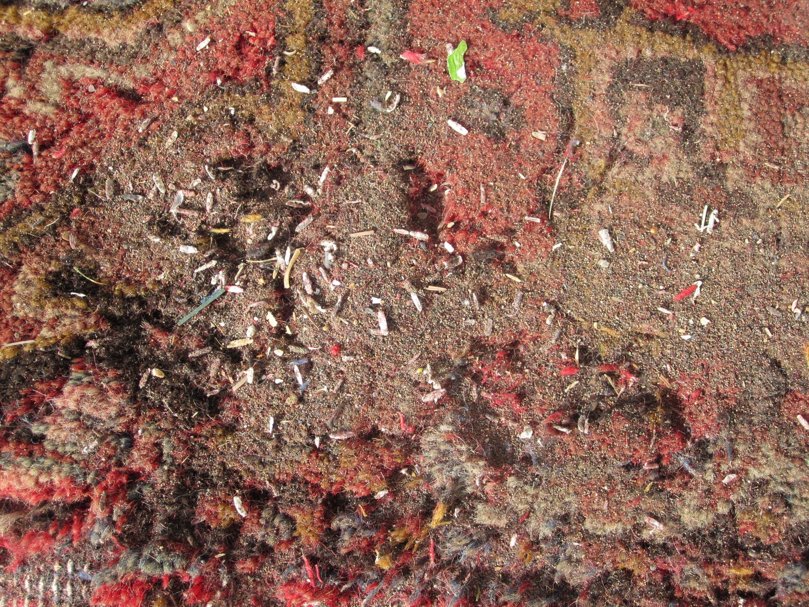 These rugs were half damaged by moth. You could see the dead moths, live moths, eggs and larvae all over these three rugs. What a bunch of parties they had at the rug’s owner’s expense! The client had thought he had saved some money by not cleaning these rugs. It is like saving money by not taking care of the cavity of our teeth when we should. This client although very old, started bargaining with me and trying to negotiate the prices. While I was there in the yard inspecting the rugs after I had given him my quote, he said “No, that is too much” and asked his daughter to call other places to get few other quotes. He was trying to play game with me. His daughter said “Dad, his prices seems to be fair and I am convinced that they can do a good rug cleaning job.” His father was not paying attention and was repeating himself. The daughter added “Dad, now you have to pay the money you have not been paying for cleaning of these rugs all these years.”