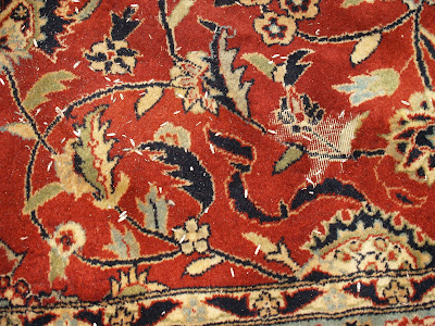 We have to reweave the damaged areas. To do this, we match the design and color. Thank you for visiting our blog.