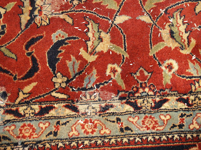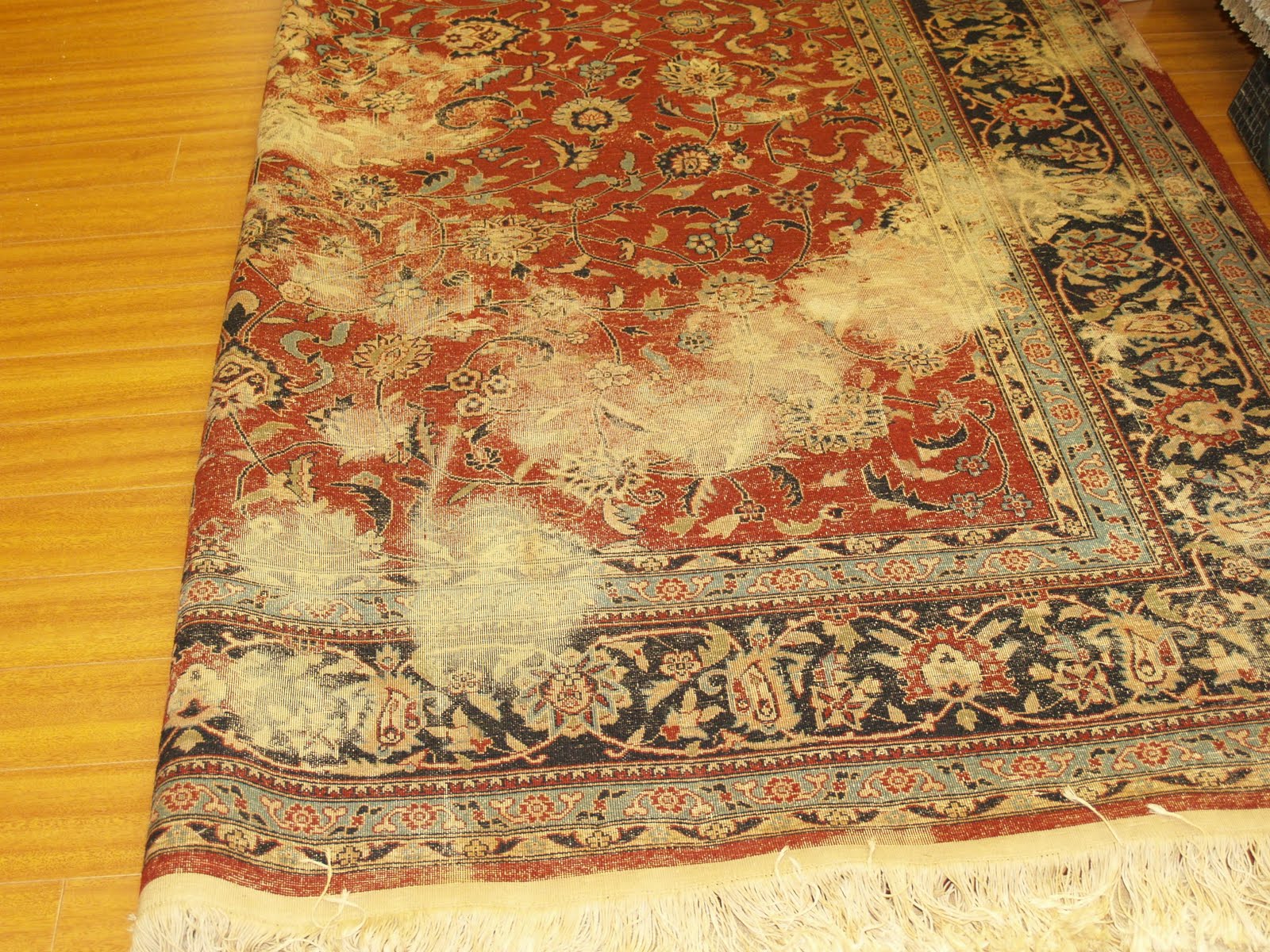 We picked up a moth damaged rug from a public storage. This is what happens if we store our rugs in a dark and humid place without having it professionally deep cleaned and wrapped in acid free paper. This is a hand knotted rug with cotton foundation and good quality wool pile. We deep cleaned this rug to make sure that the moth, eggs and larvae are out of the rug.