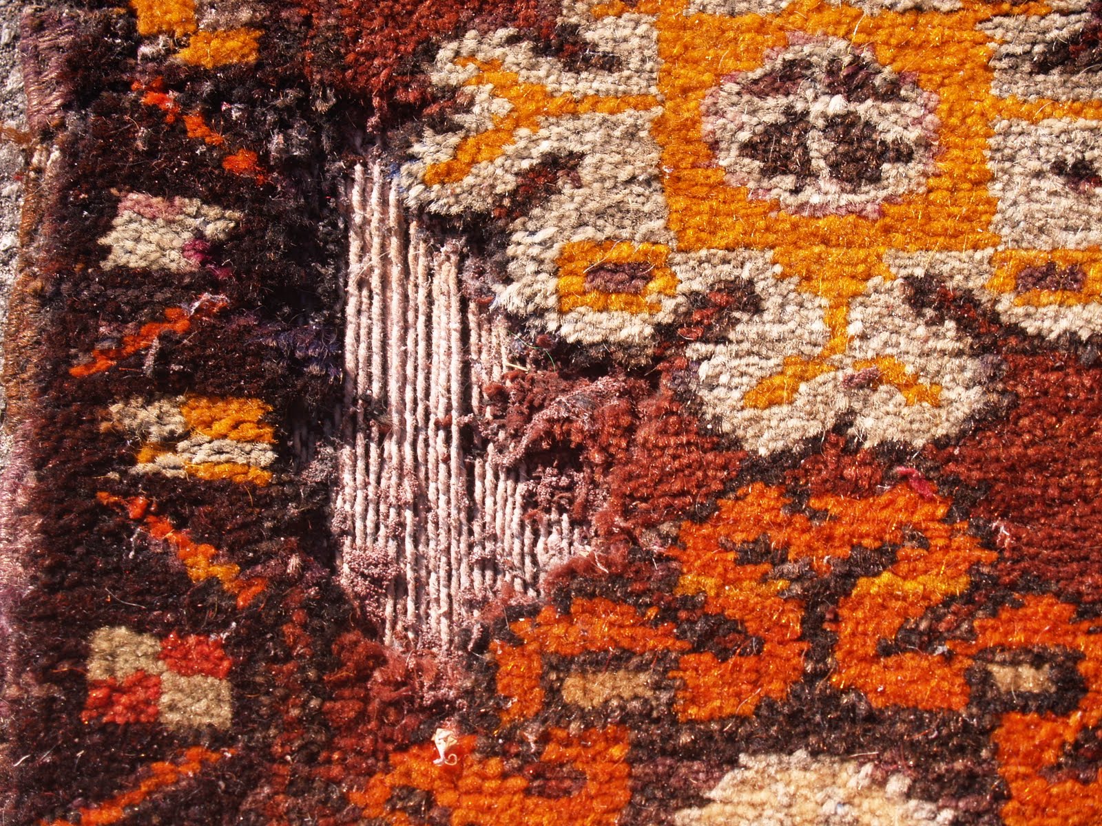 We get many rugs that have been damaged by moth. Moth are very small creatures who feed off of wool. The wool has proteins and nutrition which are essential for moth. For that reason, they love eating handmade rugs. They live in moist dark areas. Many people who store their rugs in plastic bags in storage places, think that their rugs are safe. They actually put their rugs at higher danger of being damaged than if they were using them at home. Wool rugs need to be able to breathe and need few hours of sunlight at least every few months. If this is not taken care of, moth will start appearing on your rug and damage it. When our customers give us their rugs for moth damage repair, we give them a page of Rug Storage Tips so after their rug is repaired, they can maintain its health.