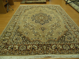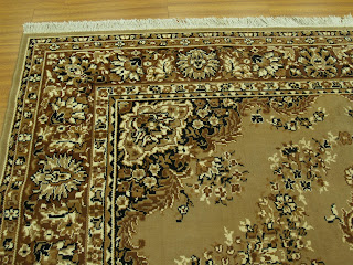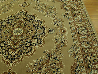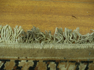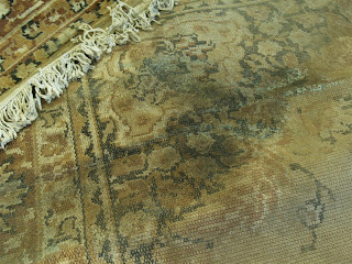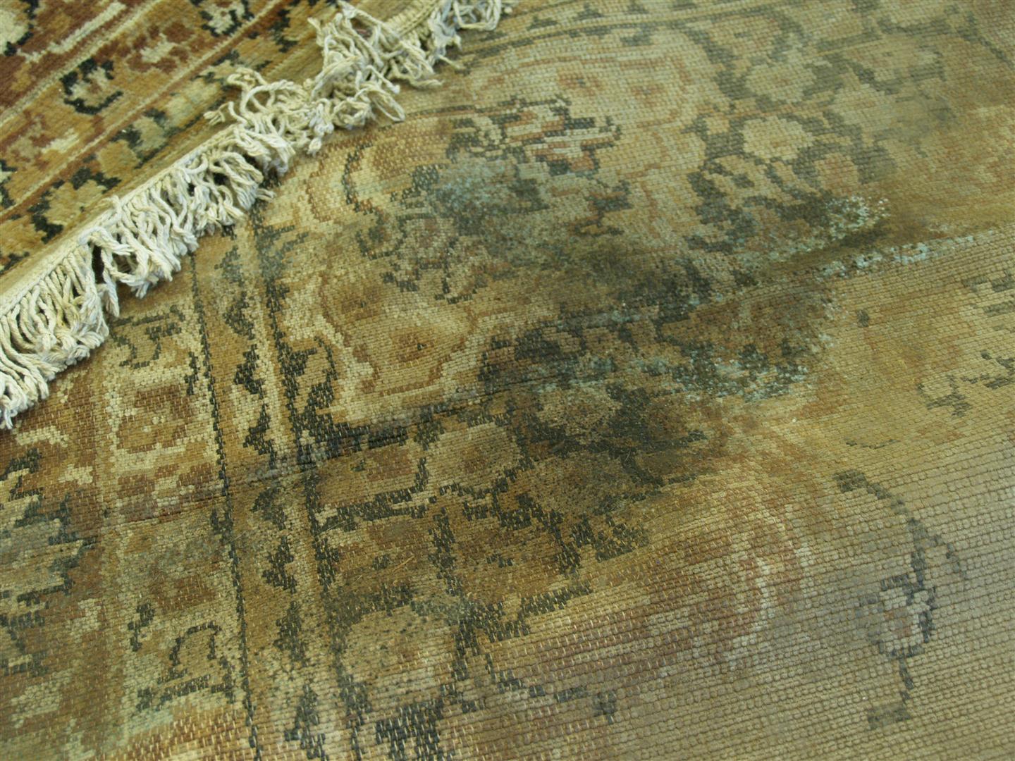 A water damaged machine made rug came in last week and with it and unhappy owner. Apparently a pipe burst in an upstairs neighbors apt and the resulting flood water damaged the apt below. This rug had been completely saturated by the event and when the owner tried to dry it out, it created bends in the rug as it became stiff and developed mold/mildew. Take a look below: