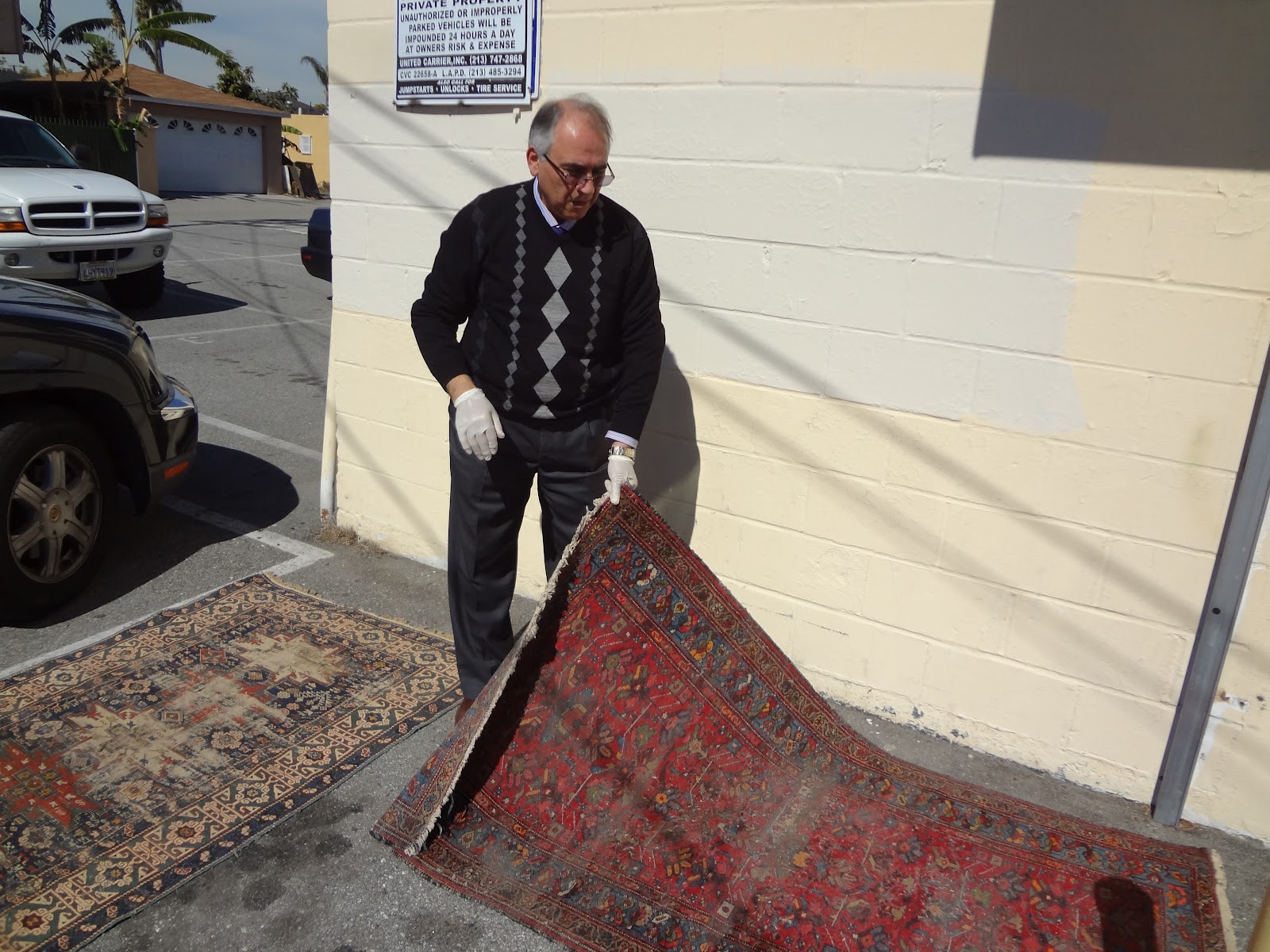 We received eight rugs from a customer with severe moth damages. Two were trash and not solvable. The rest were somehow savable. We did not take them inside our rug gallery and workshop. We put them under the sun while some of the moths were alive jumping up and down. At the end of the day, we used our heavy duty vacuum cleaner to vacuum each rug thoroughly before we sent them all for deep hand cleaning/washing.