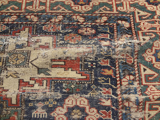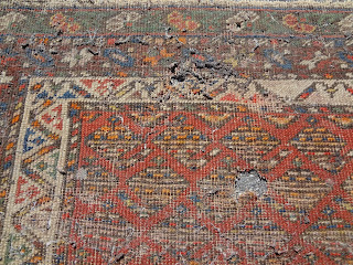 prevention is better than cure. We received eight rugs for cleaning a few days ago. They were all severely moth damaged while they were in storage. Two of the eight were not cleanable we asked the owners to trash them. They put these two unsalvageable rugs in our garbage container in our parking lot. We did not take these rugs inside our rug store on to our workshop. We laid them down outside under the sun for a few hours before measuring, tagging and photographing them. At the end of the day we sent them to cleaning and sanitizing.
