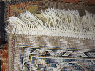 Hand-Tufted Rugs: Lately we have seen a vast number of “hand-tufted” rugs sold in many department and furnishing stores. These rugs have the “V” shaped tuft either pulled through the warp threads by hand, or shot into a plastic grid with a tufting gun. A layer of glue is spread over this to hold it all together, and then a cloth backing is put on to cover this ugly construction. This technique saves the manufacturer time, but creates a rug that will not hold up well over time. In the trade we call these rugs “glue-backs”.