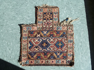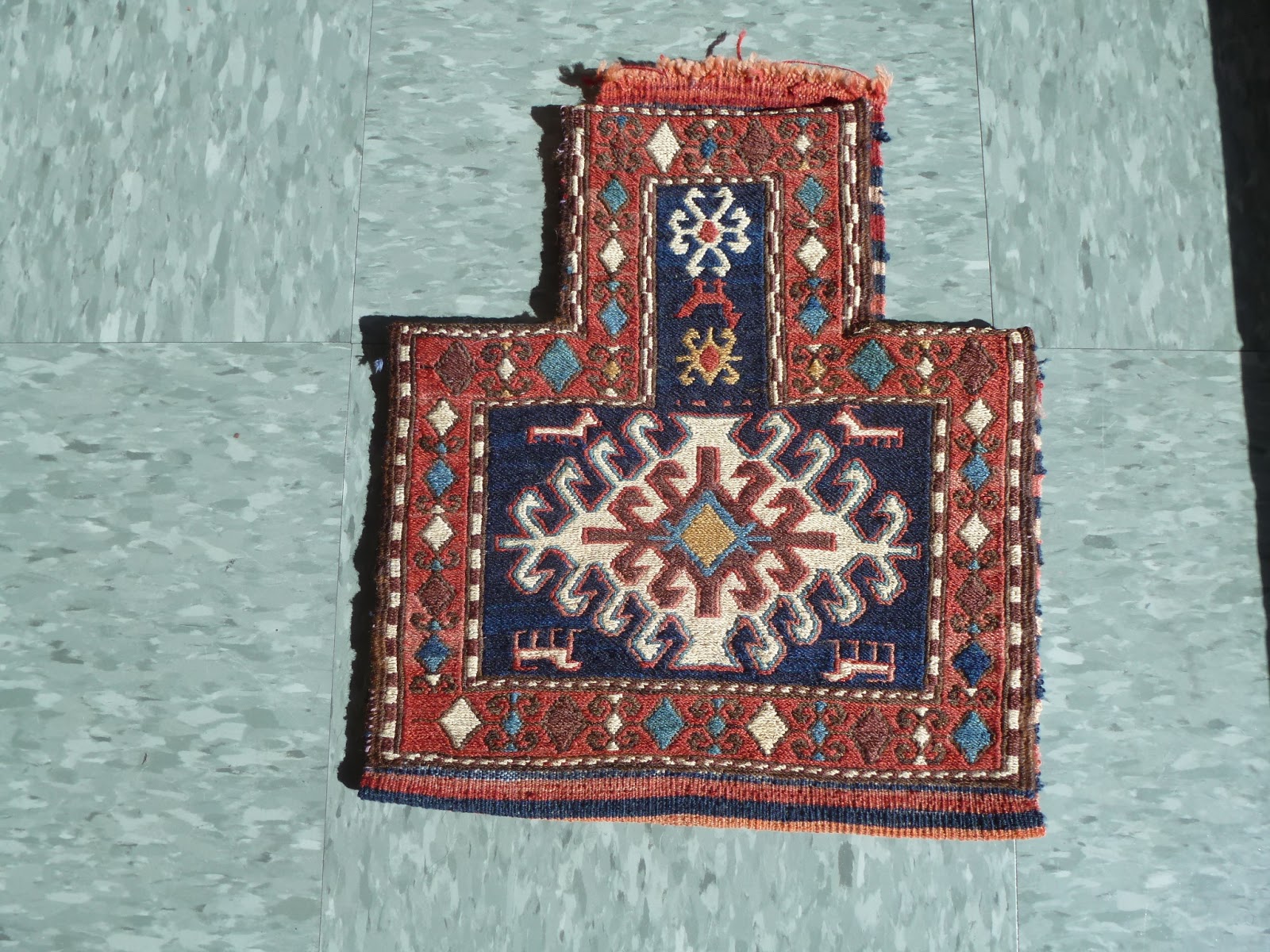 Salt bags were an essential part of the Persian and Central Asian nomad’s woven trappings, in order to carry salt on their annual migrations, and keep it safe and handy for storage and use. These unique weavings were made by most, if not all, of the weaving tribes of Persia: the Luri, Bakhtiyari, Afshar, Qashqa’i, Khamseh, Kurd, Shahsavan, Baluch, Timuri; also by Baluch and Timuri tribes in Afghanistan and Pakistan. Salt bags are bags of a unique shape, with a rectangular area below and a narrower neck open at the top.