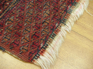This next pic is of the same rug after securing has been done to prevent any further inward damage to the rug. The work is done completely by hand and each knot done provides strength to the foundation where the fringes and rug pattern meet. This rug now has the strength it needs to endure many more years of use.