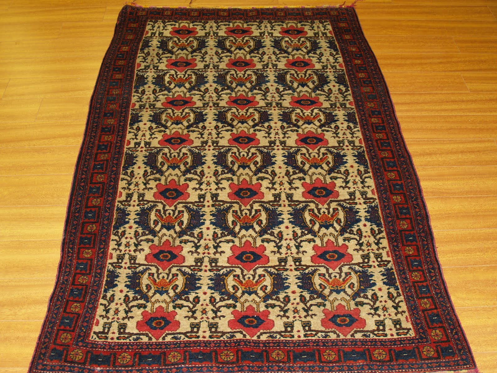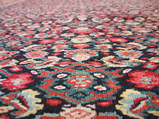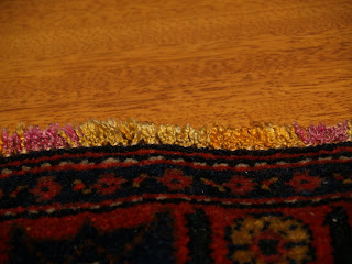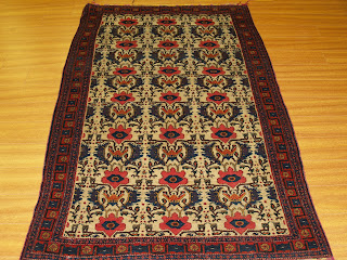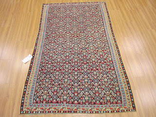 Here, I am posting pictures of an antique Senneh carpet and another antique very delicate tapestry type Senneh kilim which we cleaned and restored recently. Each piece belonged to a different customer. I enjoyed having them in my possession for a couple of weeks. The Senneh kilim was badly damaged on several spots on the background. The fringes at the ends were also falling apart. We did “overcastting” to secure the fringes and the ends. The Senneh rug was very dirty with moth and larvae in it. The fringes were damaged and lose. Both of our customers who had these treasures were very happy with our hand cleaning and cosmetic rug repair jobs.