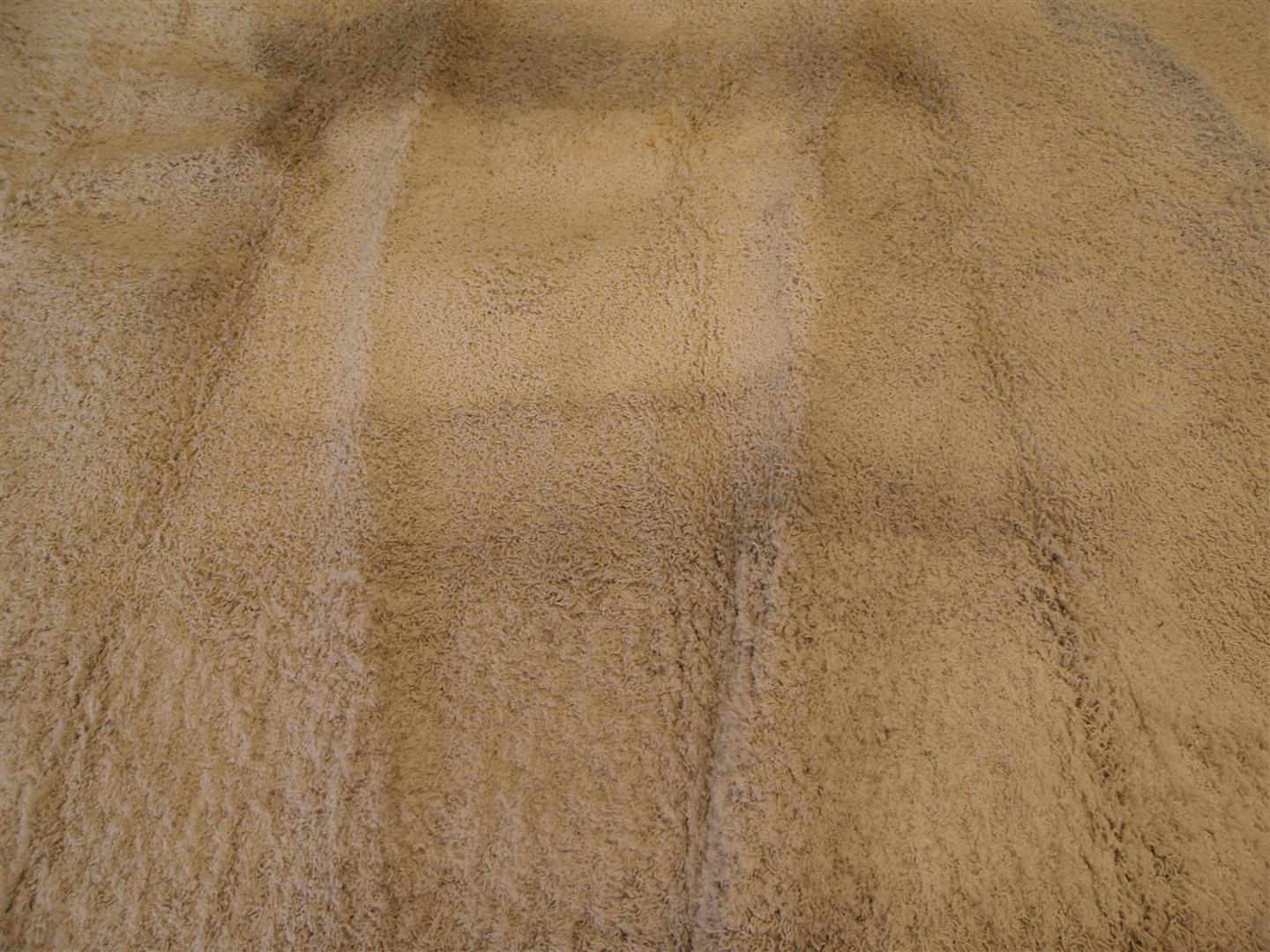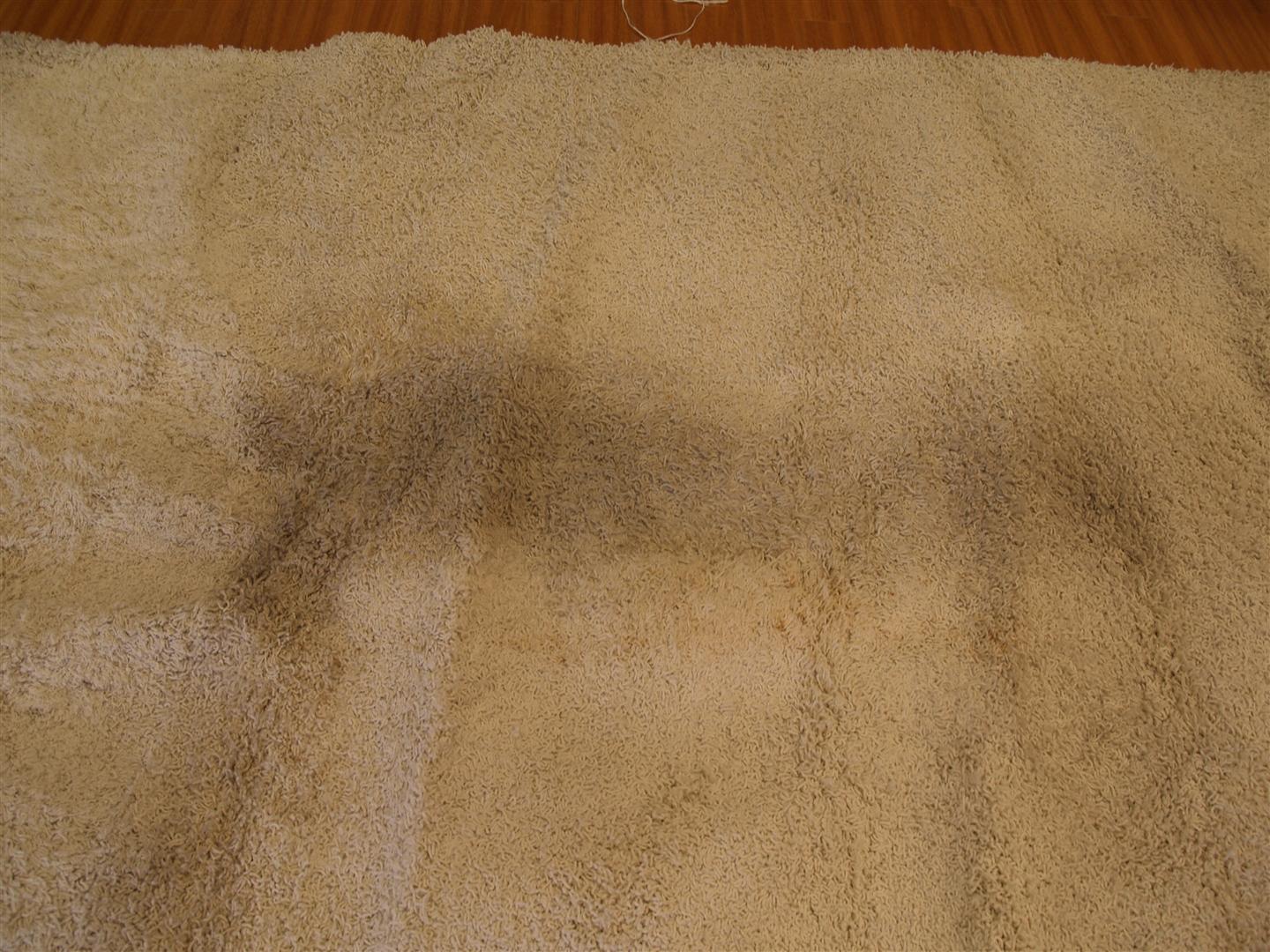 A customer brought in his shag rug from his house last week that hadn’t been cleaned in about 4 years. It sat in his living room and it’s sheen had definitely gone elsewhere. The owner really noticed when he moved a table that was sitting on top of the rug and unpleasantly surprised. Take a look below: