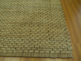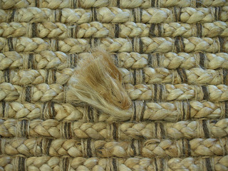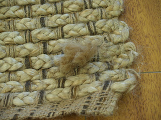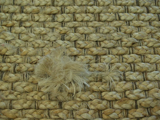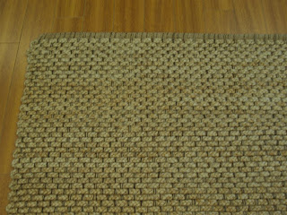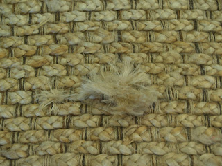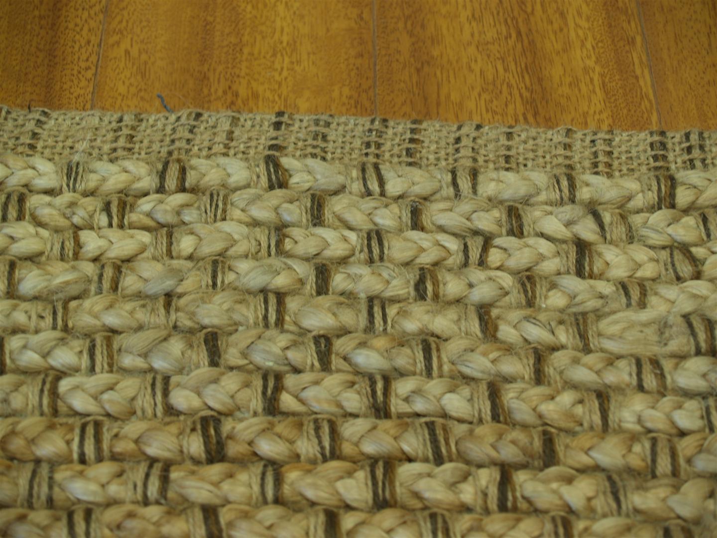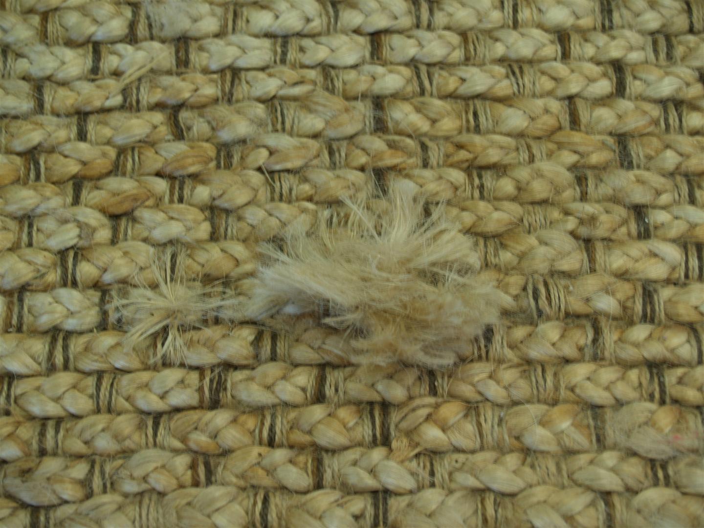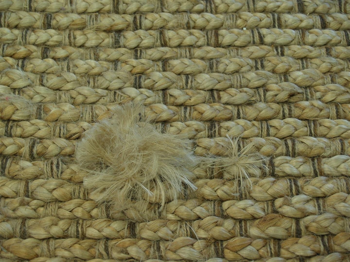 We went out last week to a customers house to pick up 2 Sisal Rugs for repair. The Sisal Rugs were only about 1-2 months old but it turns out that he recently introduced a Golden Retriever puppy into his home to join 2 other adult Golden Retrievers. The puppy is in teething mode and decided that the canvas and rubber backing of the Sisal in the living room would be a great chew toy. He broke strands of the Sisal Rug off and had started pulling the material out. Take a look at the pics below: