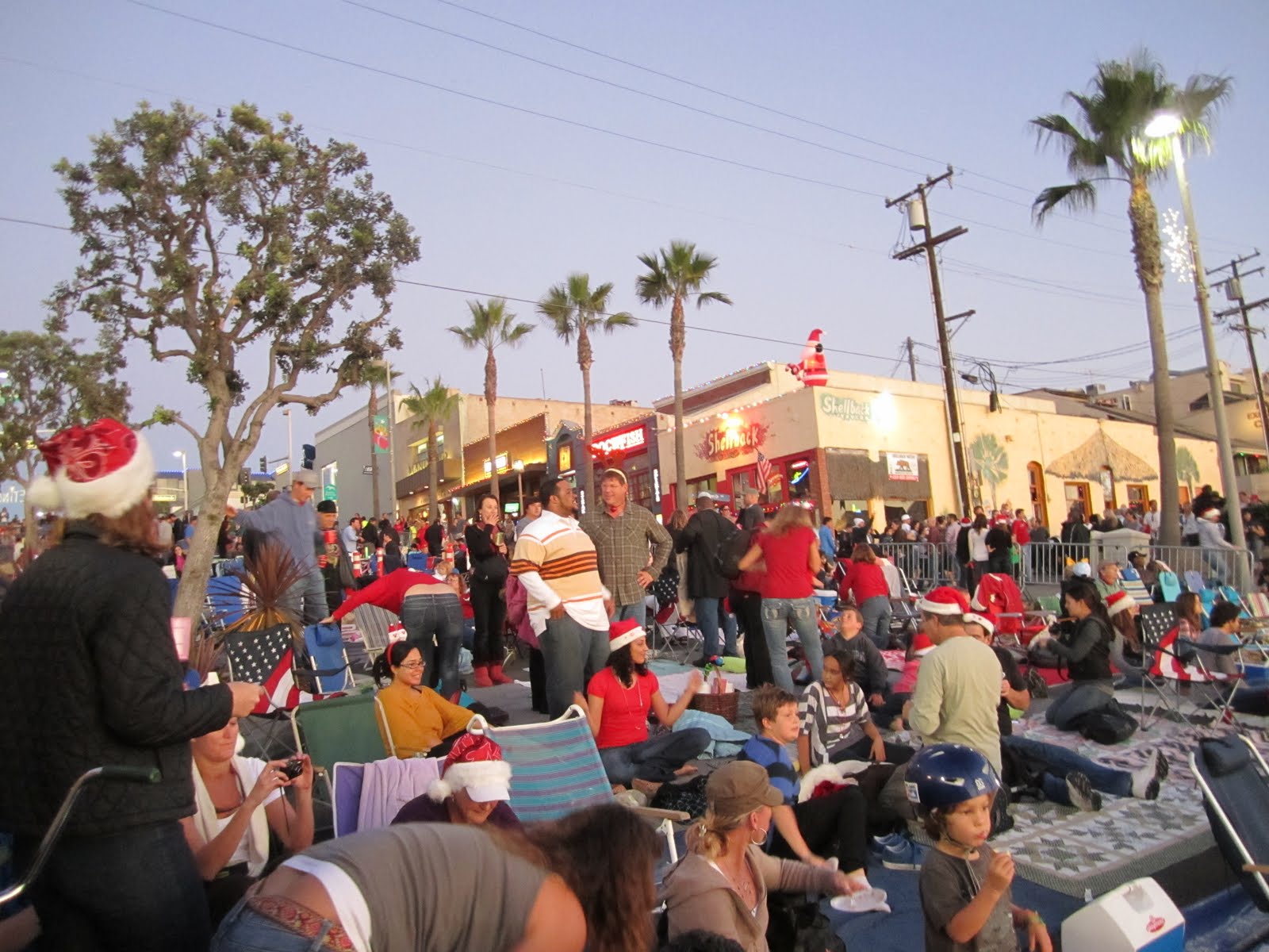 This past Sunday, we went to Manhattan Beach, 15 miles south of Los Angeles. It was summer in the winter. Many people were swimming and some were surf riding. While the rest of the country was in snow and had cold/freezing weather, it was 83 degrees (29 degrees in Celsius) in Manhattan Beach. We had lunch and noticed that the police had closed down the street and people were gathering and sitting down on the street waiting for a concert to start.